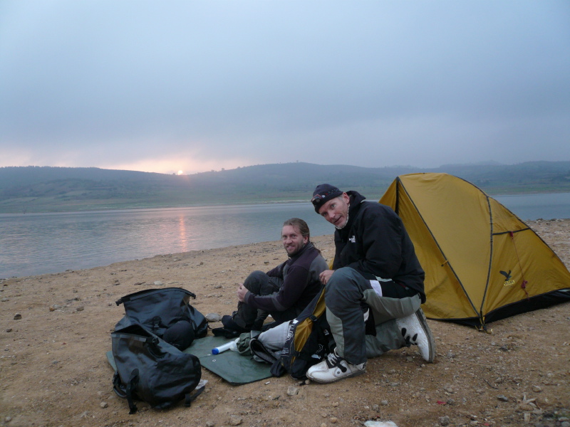 Das letzte Mal Campingurlaub liegt verdammt lang zurück und ich habe mir nicht wirklich vorab darüber Gedanken gemacht. Einfach Schlafsack und Iso-matte gekauft und los ging`s. In der ersten Nacht war es schon dunkel als wir uns auf die Suche nach einem geeigneten Lager gemacht haben. Das war kurz nach der Fähre hinter Istanbul.Auf der Karte hatten wir einen See gesehen und wir dachten, das wäre doch ganz nett. Aber in der Dunkelheit konnten wir den See nicht finden und schlugen unsere Zelte auf einer Obstplantage unter Apfelbäumen auf. Das klingt auch romantisch, ist aber eher ein organisatorischer Gewaltakt. Alles naß, unter uns Schlamm und stockdunkel.Nirgendwo kann man irgendetwas abstellen, weil sofort dreckig. Schwierig, aber trotzdem schön:) Und wenn endlich alles aufgebaut ist, man anfängt Spagetti überm Bunsenbrenner zu kochen, die Flasche Wein geöffnet ist, wird es sogar ganz gemütlich. Es wurde immer schon so gegen sechs schwärzeste Nacht und schlagartig kalt, so daß wir immer recht früh im Zelt verschwunden waren und am nächsten Tag früh raus sind. Gideon war immer! schneller als wir und hatte schon den besten Kaffee gekocht.
